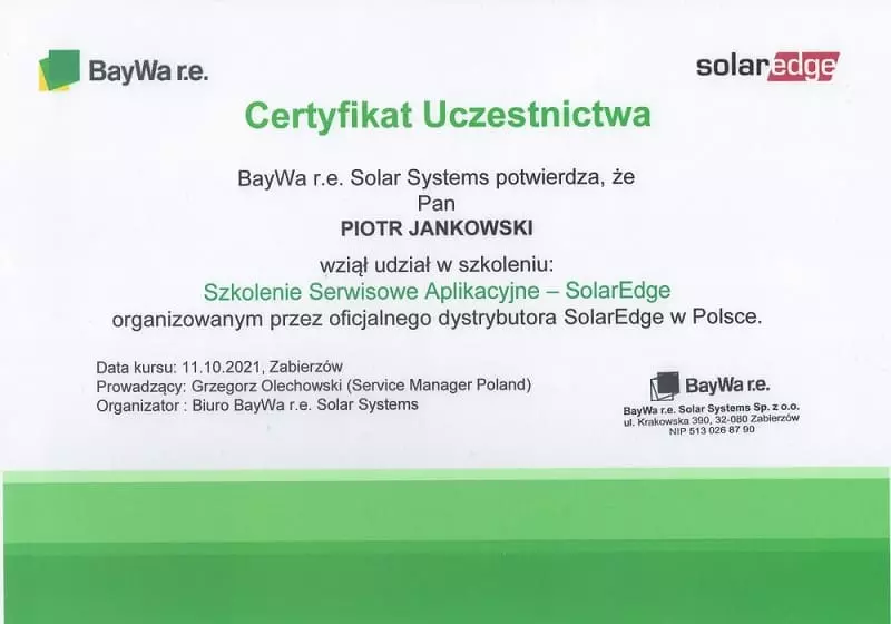Nasza firma posiada niezbędne kwalifikacje oraz uprawnienia do profesjonalnego montażu paneli fotowoltaicznych.